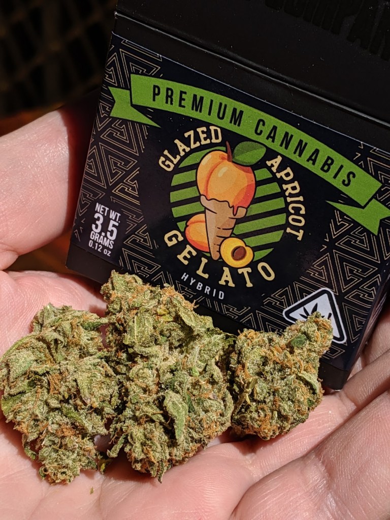 Glazed Apricot Gelato from The Cure Company via New Generation on 8/14/19. THC tested out to 21.23%. Purchased for $50 plus sales tax. I swooped in to New Generation in order to get a great deal, but while I was there, I figured I’d look for something new. The Cure Company had been on my radar for a bit and my only experience so far was a less than stellar pre-roll. I spotted this Glazed Apricot Gelato which was touted as an exclusive as it was grown with Snoop’s Premium Nutrients. The look of the nugs are less than stellar, they have a sort of ratty look to them even though they’re pretty dense, I’m not sure if this is because of the trim but something about them just didn’t hit my eyes properly. That’s probably my main criticism as the rest of the experience was very positive from there.