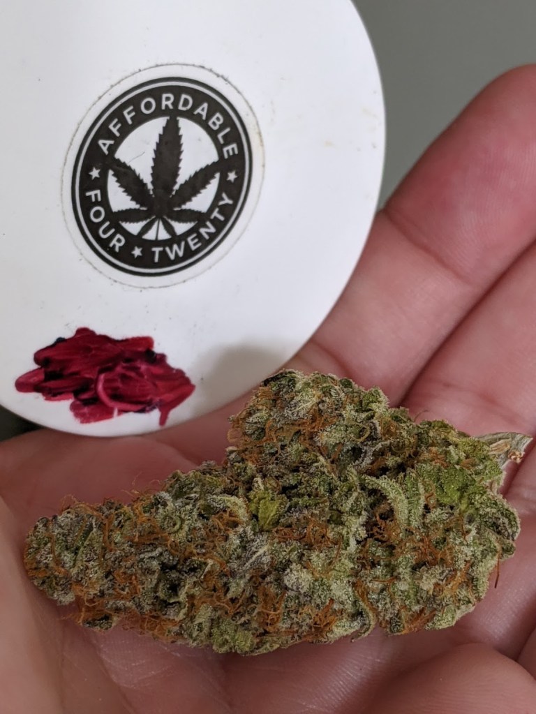 The nose out of the jar was initially confusing but as it cured it settled into an earthy scent with a touch of mint in the background. On the nug break the mint really steps to the foreground while bringing a savory scent with it that’s slightly reminiscent of sautéed onions. Breaking it down by hand reveals an even deeper level of scents. A previously undetected sweetness makes itself known and I pick up on an equally strong presence of pine and mint. It also leaves a nice stickiness on the fingers. The inhale is smooth and I pick up on a faint floral taste, while on exhale I get a minty yet savory experience. The headchange comes on quick and heavy. I found myself completely zoned out, fumbling for words on occasion, and feeling couchlocked with in a few minutes after finishing back to back bowls. I must have thought about getting up to get some water for a solid 5 minutes before I actually did. You can focus and get things done if you really need to but it’s a motivation sapper without a doubt. I’d save this one for the end of the day when you’re ready to just put on some random youtube videos and space out. For the ticket this is an absolutely phenomenal deal. Great work once again Affordable Four Twenty! You’re definitely putting out some solid herb and doing right by your name.
