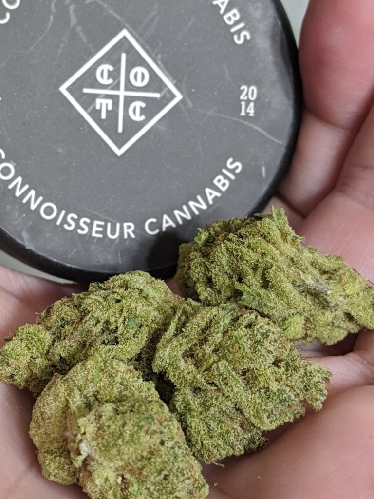 The nose of out the jar is this beautiful heavy orange scent that lands on the sweeter side coming off like some sort of orange candy that’s made with real organic ingredients. On breaking the nug that orange smells stays dominant but I pick up on a floral element making itself known. Breaking it down by hand those oranges remain but there is a fresh element that steps up to the plate as well hitting my nose somewhere between mint and pine but not exactly landing on either. The inhale is smooth, and you catch that orange experience both in and out, while it ends up leaving a nice natural orange peel like aftertaste on the tongue. The headchange comes on quick and brings a nice level of energy with it while simultaneously putting pressure on the top of your forehead and the sides of your eyes. I will say I had a little trouble staying focused and often times found myself staring off into space only to snap back into reality while exclaiming “oh yeah” and happily resuming whatever I was working on. On the jar it describes the potential effects as “Relaxed, Creative, Euphoria” and I would say that does seem to fall in line with my personal experience here. That relaxed sort of pressure around the head and eyes coupled with the boost of energy and happy go lucky attitude were no doubt present. While no sort of cannabis is going to force feed you creative ideas, I feel like it did put me in positive state of mind where creative could flourish, so I’ll give it to COTC on that one too. Of course, as always, your milage may vary. In the end, Bang Bang is a fantastic sativa and one that quickly became my go to morning smoke. The only hesitation I’d have with picking it up again is the price as there are some quality sativas out there like Crescendo and Quest that come in at about $40 and $45 respectively. That said if the price were the same across the board, it would be an extremely hard choice as Bang Bang really is a phenomenal sativa, it just has some really stiff competition. Amazing work on this one COTC, the only thing I’m bummed about on this batch is that I don’t have any left.