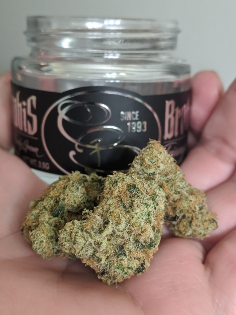 The nose out of the jar is a musty pepper coupled with rubber and a slightly minty back end. On busting open a nug the mint seems to amp up and brings a bit of pine with it that pushes that rubber back slightly giving the scent this overall industrial cleaner sort of vibe. This batch is very resistant to being ground by hand. It’s very sticky and sort of rolls up on itself creating pebbles instead of dusting out. Once ground the mint widens out and a sugar sweetness emerges while the rubber gets further relegated to the background but still remains present. When dry pulling a joint I pick up on mint with a sugary aftertaste. The inhale is smooth as expected and I pick up on a slight menthol tang. On the exhale from the joint I get mint and pine with a savory edge, however, when using my bong it was a much stronger sugar mint with a hard pepper slap. It’s one of those exhales that hits you right in the sinuses and septum and makes you feel like you just sneezed. Cross checking the flavor on my MV1 from @ghostvapesofficial that sweet menthol taste was really taken to a new level where it had a brow raising Winterfresh gum like effect and I actually got a “cool” feeling from the exhale. The headchange absolutely smacks near immediately with an intensity that increases over time. It hit me in the sinuses and traveled into my neck and upper back with an ASMR type tingle. I found myself spacing out constantly, lost in my own thoughts, only to snap suddenly back to reality and needing a minute to get my bearings straight. I’d say this is a powerful indica leaning hybrid with formidable stamina that’s best saved for the evening when you’re looking get hella zonked. It will make you take a seat on the couch and you’ll be staring at the TV for 20 minutes before you realize you’ve just been zoning out on the Netflix menu and haven’t selected anything to watch. Fantastic work by The Cannabis Brothers! I will definitely keep an eye out for more of their product as it’s apparent they are cultivators of the highest echelon.
