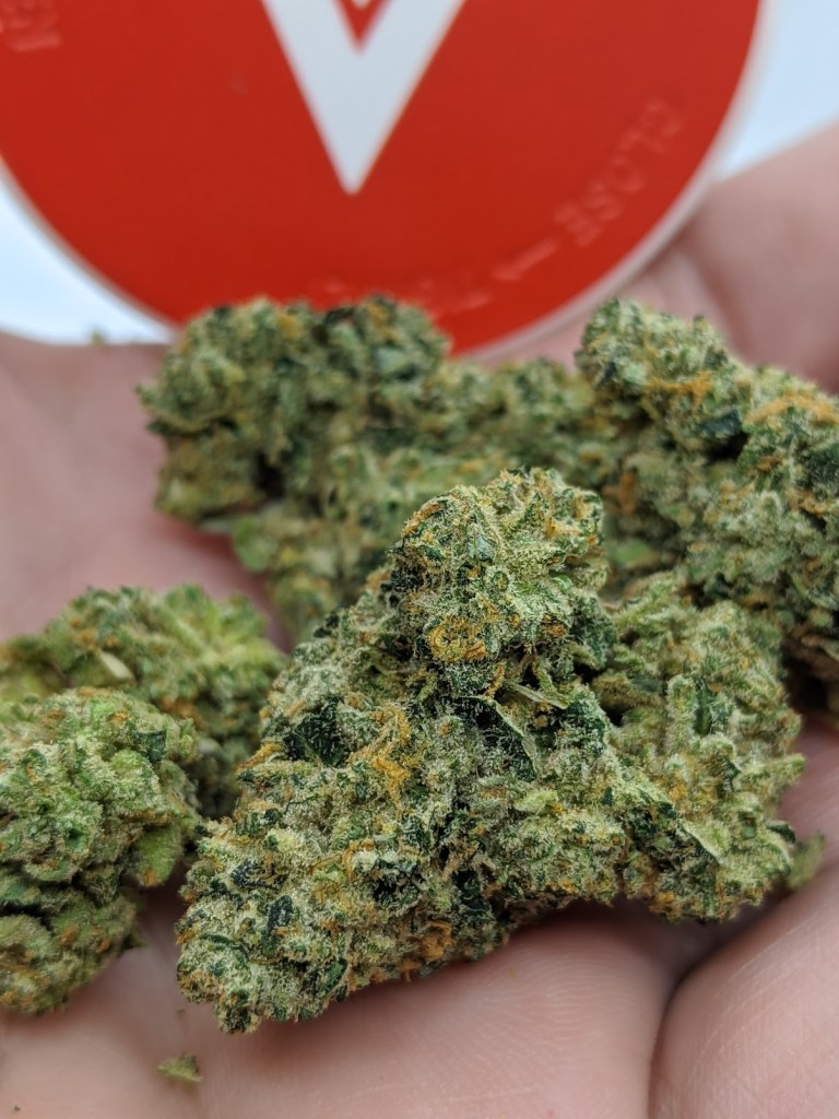 Gelatti from Ember Valley via Los Angeles Farmers_ on 2/04/2020. THC tested out to 21.04%. Purchased for $25 out the door. I have heard a lot of great things about Gelatti so when I saw Los Angeles Farmers had it on the low shelf for a killer ticket I couldn’t help but jump in. These semi dense buds are an eye catching mix of moss and hunter greens with goldenrod pistils and a healthy layer of brilliant white triches.