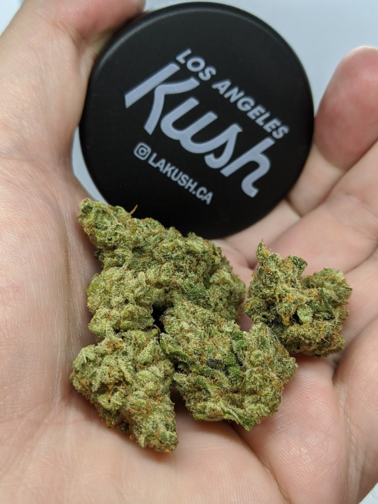 Kushberry Cheesecake from LA Kush via Show Grow Long Beach on 4/27/2020 (shoutout to Travis at Show Grow for the swoop). THC tested out to 25.74% THC. I got this for $40 out the door but it typically goes for about $50 plus tax. A few years ago, LA Kush was one of my favorite medical spots to hit as they had solid tickets and some unique genetics, so getting my hands on this Kushberry Cheesecake was a welcome blast from the past. These mildly dense nugs have a look that reminds me of the tall aborvitaes that you commonly see lining the driveways of upper middle class homes. The surface is mostly a mix of forest and lime greens with sprigs of dark amber pistils and a frosting of yellowing triches that give the buds a warm chartreuse sheen.