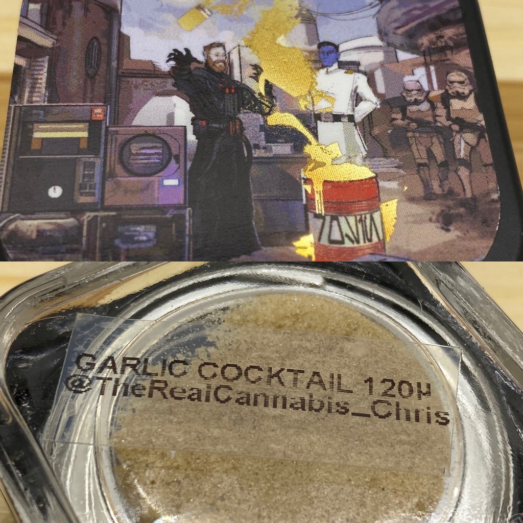 I love Mimosa and I’ve really enjoyed the sweet and savory crosses of #gmo and fruity strains that have been popping up. This one is probably my favorite with the mimosa being the dominant flavor provider and the Gmo putting an amazing funky spin on it. Ends up tasting like a savory 50/50 bar and although that may not sound appealing once I tasted it I instantly loved it! The smell is crazy too with all the orange creme and crazy Gmo stink oh man! The melt is slightly darker in appearance than some of his others but still super clean with no sign of contamination and melted perfectly.