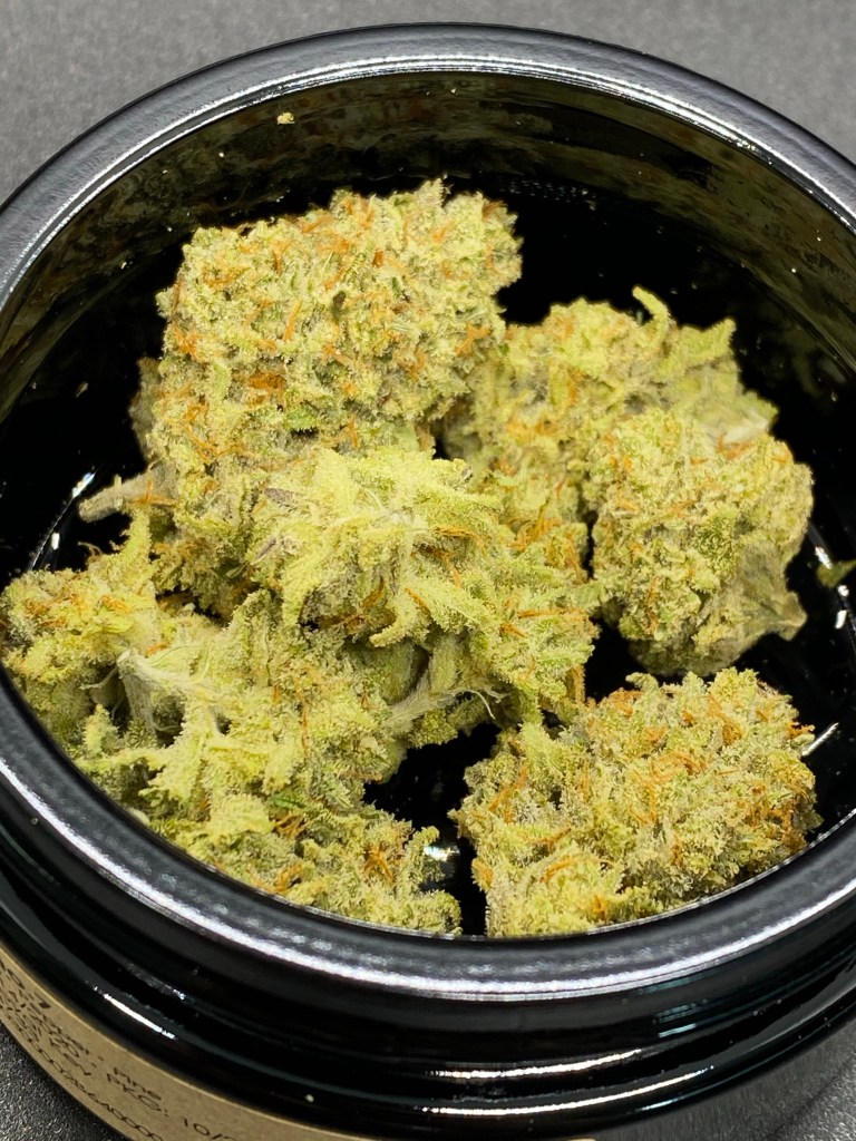 Right now this is one of the growers I’m really excited about. Their flowers have been consistently great. These ones looks amazing first thing that pops is the neon green buds covered in so much resin that the purps almost look grey. Nice bit of oranges mostly at the top. Also has that slight fluffy look dense enough to be healthy but fluffy enough to look natural. Great easy structure to break apart.