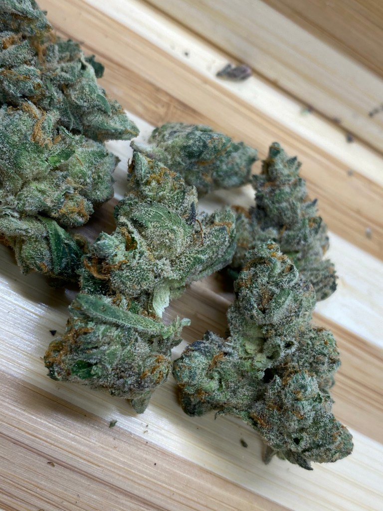 When opening the bag you’re met immediately with a musky pine and earth smell with a little bit of sweetness. When smoking it smokes like a straight Og all kinds of pine and earthy terps. Maybe some citrus? And definitely sweet and cooling in my mouth. Not overly like mint but just slightly. The high was very nice as it was uplifting and mood elevating without the energetic feel and it helped with pain and relaxed me but I never got too tired. All in all it was great smoking weed with a great effect. The taste didn’t really have me craving more but also didn’t turn me away. Look for more granflora reviews coming soon.