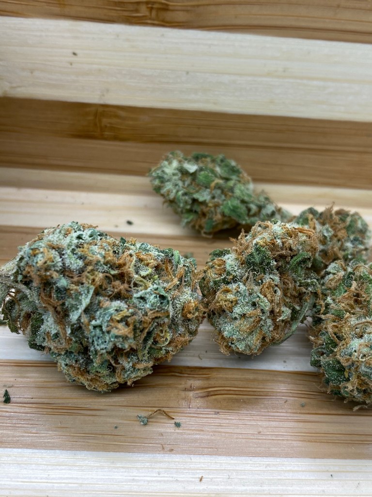 When smelling the flowers you immediately notice the putrid tropical smell I’ve come to know as Papaya cannabis. When really smelling deep it almost became sweet baby vomit smell. So I stopped smelling that deep and tried to forget that. When smoking the flowers a lot of pungent tropical funk is there with some sweetness and a nice woodsy earthiness. The high was very mellow with a nice uplifting feeling and sometimes slightly spacey. I found it useful in social or creative situations the most. Definitely a nice mood enhancer. Overall I enjoyed this flower and the best part was the taste and smell. If your looking for something with heavy medicated effects I’d look elsewhere. Burned clean smoked great tasted great it’s why I’ll definitely keep going back to wonderbrett.