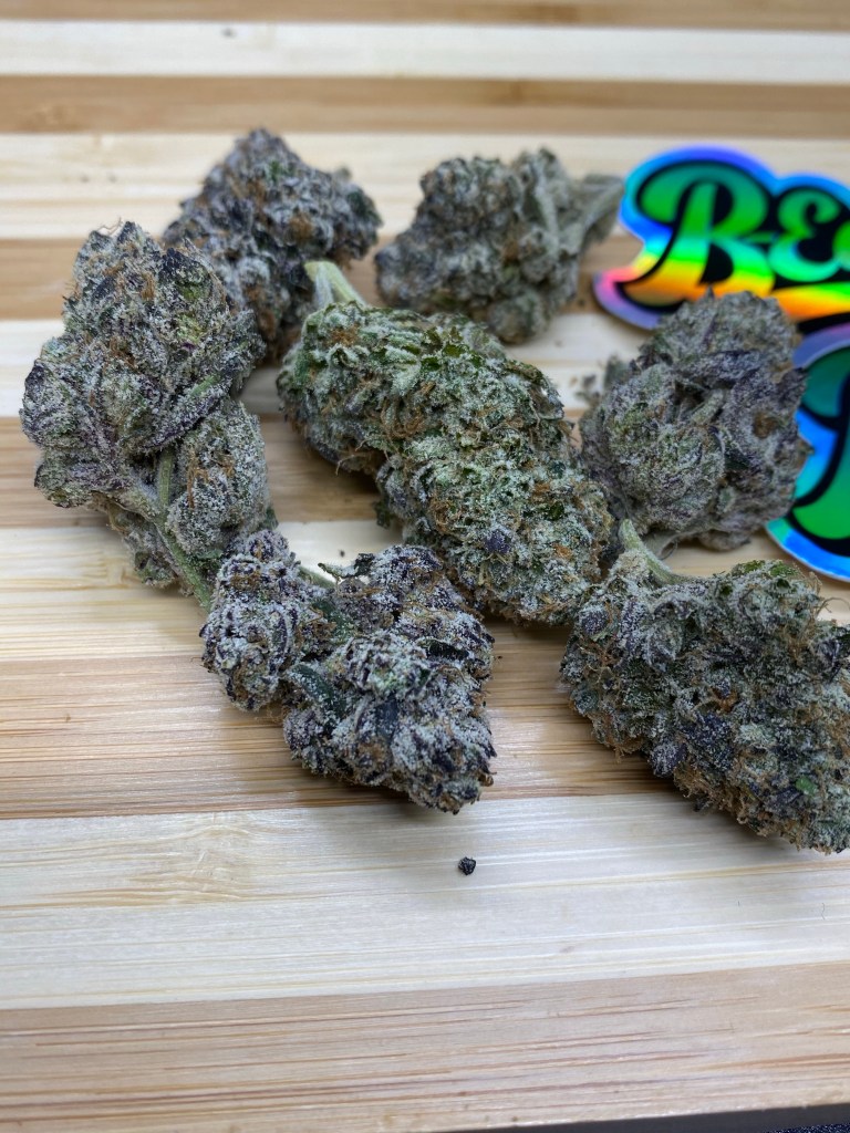 Ok so was super stoked to contacted by Beazy himself and that he enjoyed my reviews and was interested in having his flowers reviewed. It’s a bit of a nerve racking experience when you meet these people before reviewing their product because I’m very aware of the work and risk involved and plus they’re usually very nice people so I don’t want to disrespect that but also balancing that with not disrespecting the trust my followers give me. With that being said all these reviews will be honest and any criticism will be as constructive and respectful as possible. The appearance on these flowers was crazy so much so I posted to my story just to show them off. Dark purple flowers for the most part. Some bits of darker greens on possibly the inside of the plant where it might have stayed insulated and warmer than the rest of the environment and not turning purple. Great solid structure with a crazy amount of trichome coverage. When I say crazy I mean some of the most I’ve seen on any flowers I’ve had. It’s quite spectacular looking. The cure was perfect not wet but sticky easy to work with and break apart.