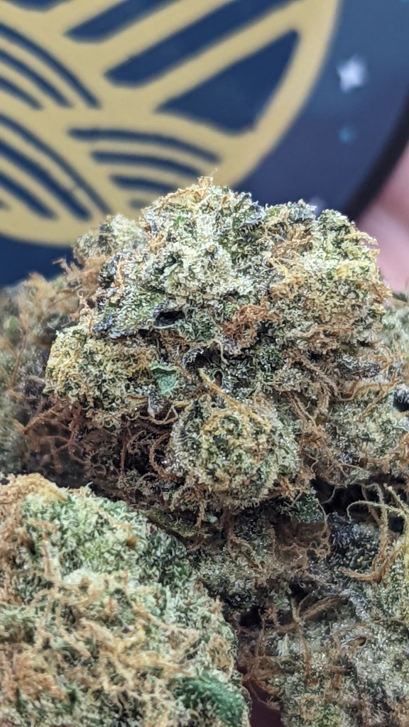 The dry pull on the joint comes with a chalky sweet floral and a touch of that fruitiness but it’s relegated to the distant background. The inhale on the joint had dough like musty floral whereas the bong had a surprisingly sweet yet brief note that at some points hit my tongue like a gassy hostess powdered donut. The exhale on the joint came with an astringent floral and a muted minty background, there was this sort of rubbery aspect that was hard to pin down, but to put it roughly my notes say “almost feel like it tastes like band-aids and hydrogen peroxide, but in a flower type of way”. The flavor from the bong was a much more familiar musty sweet chalky cream. Cross checking the flavors on my GhostVapes MV1, at 170c there’s a sugar sweet floral with a fairly strong minty aftertaste, whereas at 185c there’s a mild floral and pine mix with a light yet noticeable piney echo.