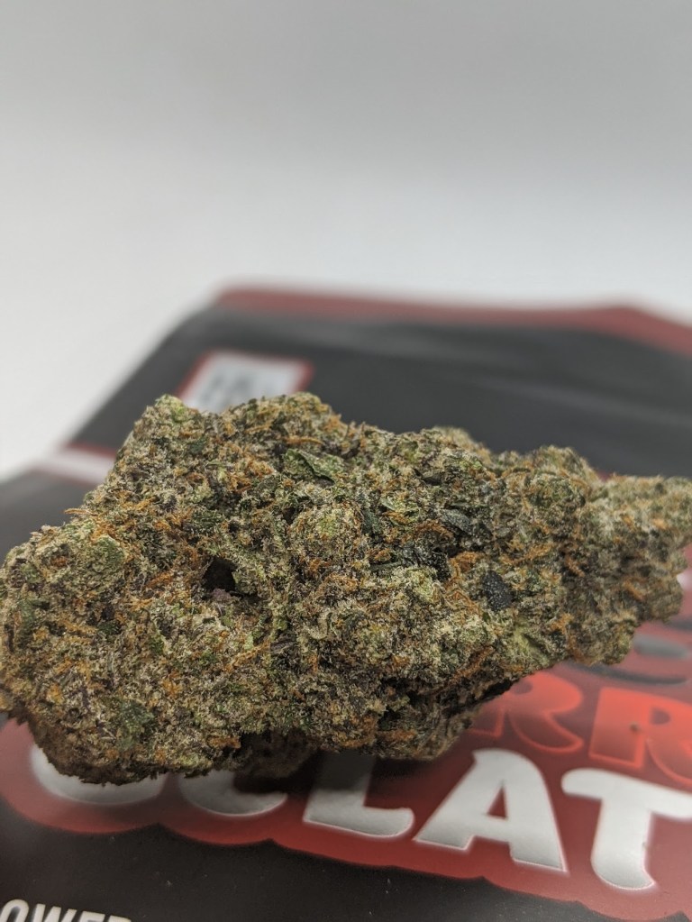 Blu Gotti from The Backpack Boyz / 5 Points LA via The Cannon Co on 2/11/2020. No Testing info presented on the bag. This was gifted to me but I have seen it go for about 40-45$ an 8th in the traditional market. Last but not least in the awesome hat trick of strains found in my sample pack from The Cannon Co is Blu Gotti. These big boulderesque buds are a hodgepodge of lime, olive, and forest greens that occasionally dip into midnight blue, with tightly wound burnt auburn pistils, and a frosty layer of tiny yellowing triches.