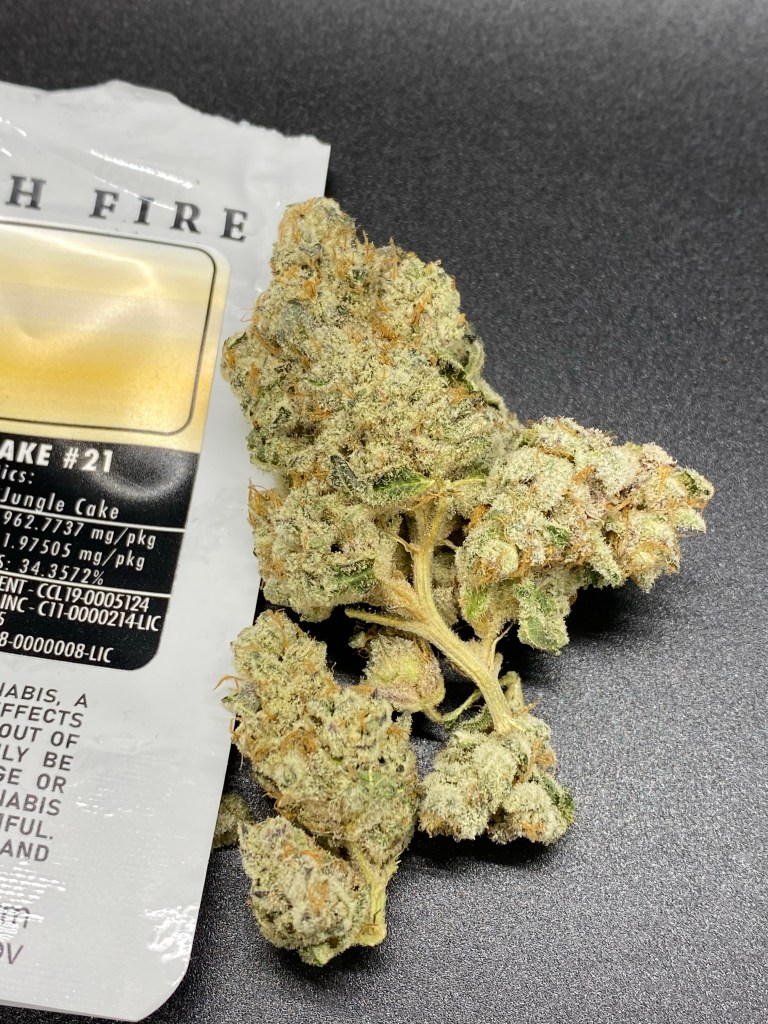 When smelling you get a sweet and skunky, earthy smell. Not really a very exciting aroma, kind of reminded me of Jungle Cake terps but not as good, and nothing discernible from the Divorce Cake. When smoking it came across as earthy skunk or basic weed taste, and there was nothing wrong with how it burned. The high with this was solid and definitely did what it needed to do — relaxed me and elevated my mood. Overall, this strain was very boring and not at all what I was expecting. Nothing Exoticz about this one.