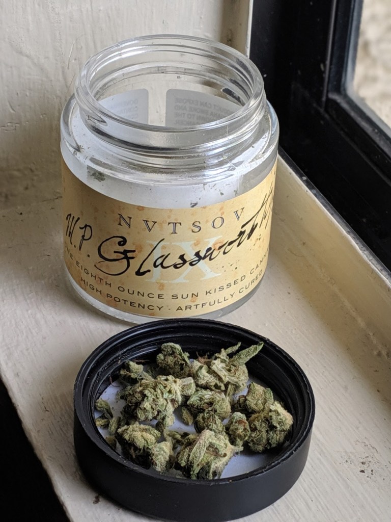 Sour Diesel from Humboldt Farms via Eaze on 5/24/19. THC tested out to 16.5%. This retails for $25 plus tax which is frankly too much. I’m not going to sugar coat it, this was a highly disappointing experience, and a really poor showing by Humboldt Farms. I have smoked a lot of outdoor Sour Diesel in my time, it’s a classic, and in the right hands you can get a beautiful flower with some enjoyable racy effects. This is not that. The buds are extremely leafy and dry, despite the moisture pack and nice jar, it’s all very crunchy.